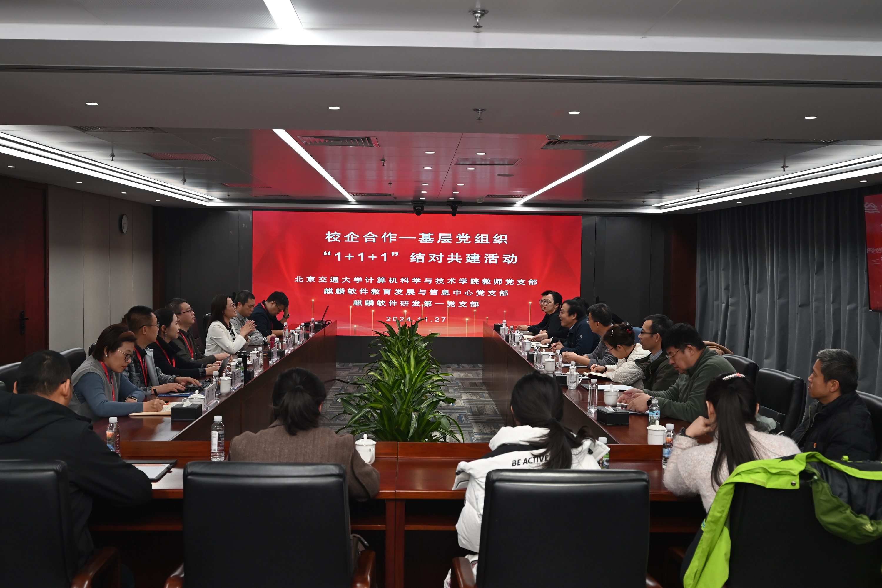 为进一步发挥党建引领作用、加强基层党组织建设、探索校企合作新模式,BEAT365英国官网与麒麟软件有限公司(以下简称“麒麟软件”)、中电科金仓(北京)科技股份有限公司(以下简称“电科金仓”)分别于11月27日、28日开展了校企党支部结对共建活动。此次活动旨在发挥党组织战斗堡垒作用及党员先锋模范作用,促进校企双方在党建工作、人才培养、技术创新等方面的深度合作,实现资源共享、优势互补、共同发展。学院党委书记贾卓生、企业党建、业务相关负责人、党员代表和业务骨干以及学院教师党支部书记、委员及系所负责人参加了此次活动。