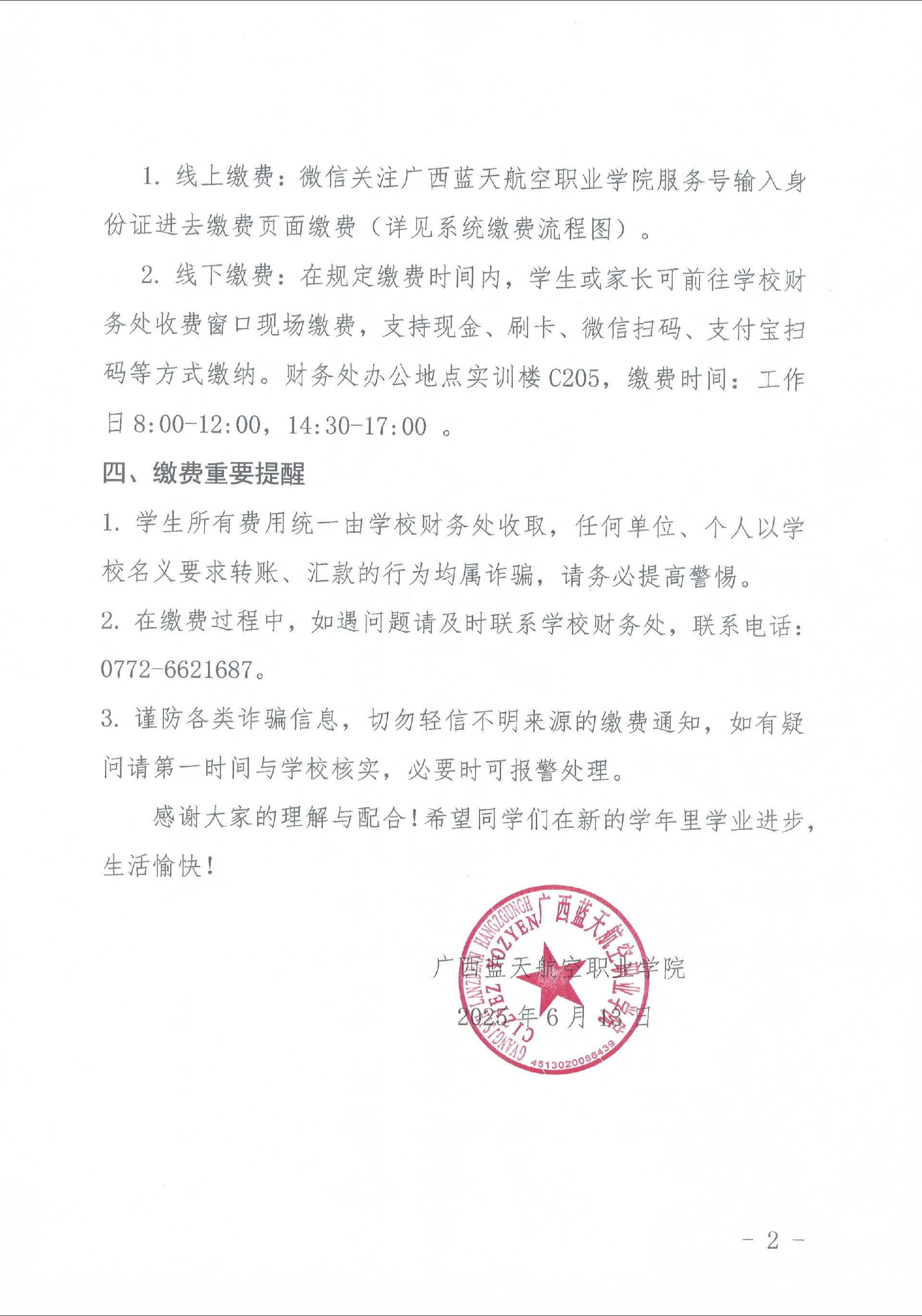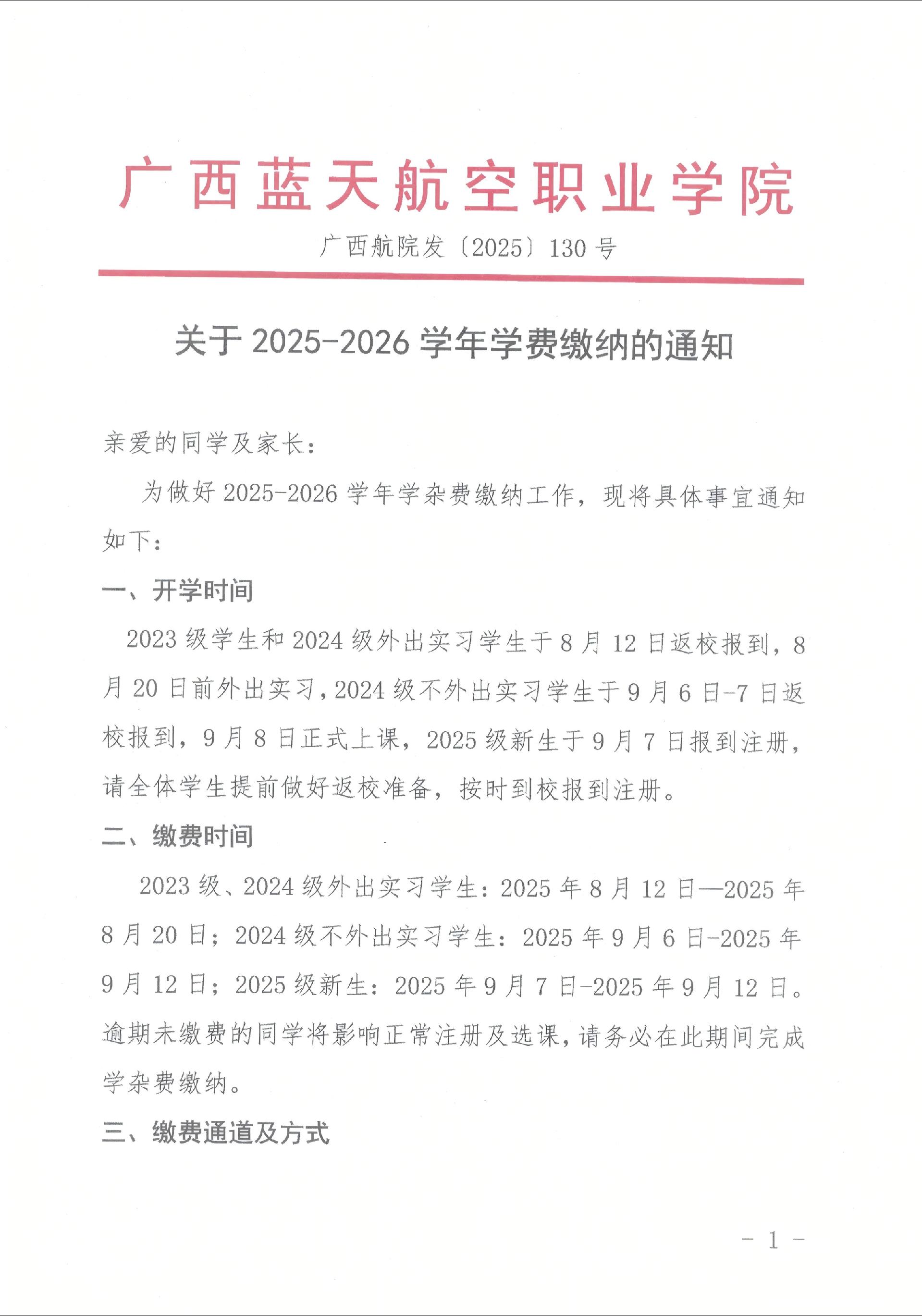 bat365正版唯一官网关于2025-2026学年学费缴纳的通知