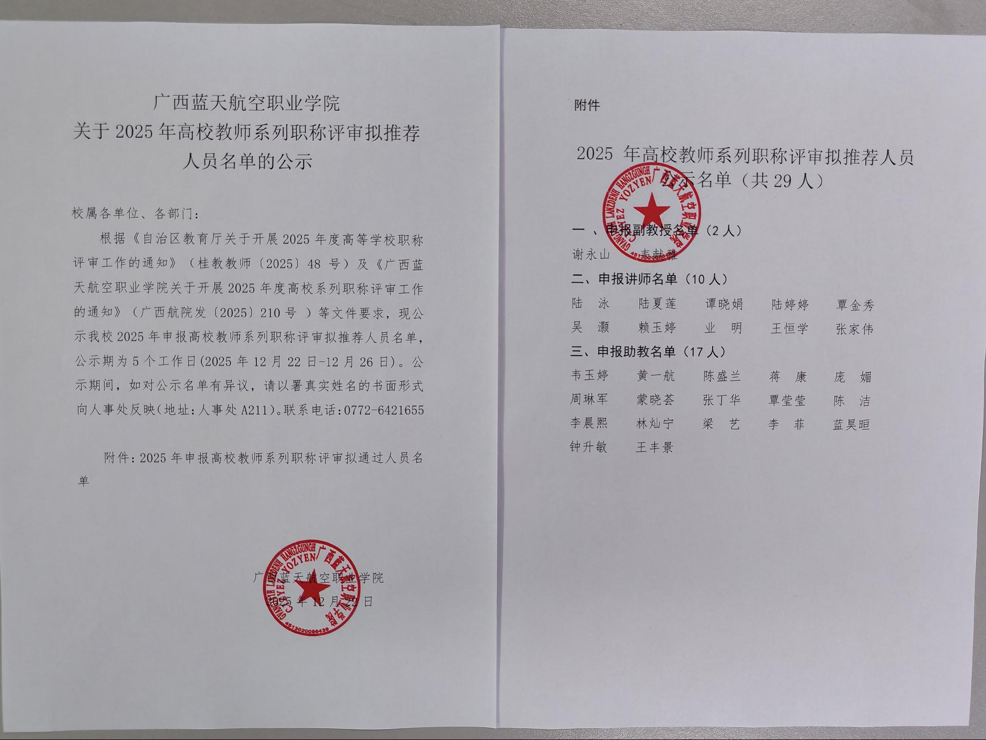 bat365正版唯一官网关于2025年高校教师系列职称评审拟推荐人员名单的公示