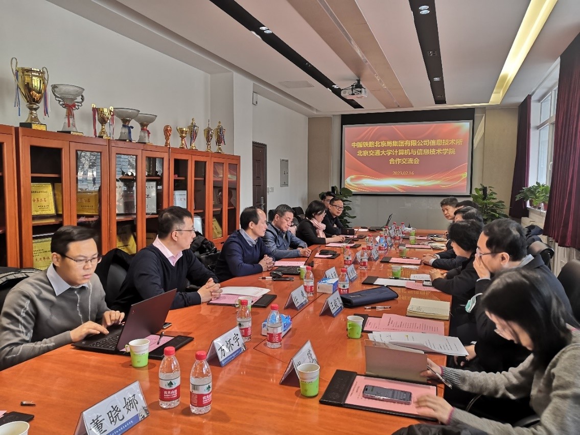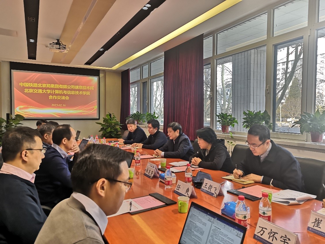 2023年2月16日上午,中国铁路北京局集团有限公司信息技术所(以下简称“中国铁路北京局信息技术所”)主任李伟、总工程师刘韶霞、副主任张海泉等一行六人来访BEAT365英国官网,与计算机学院院长蔡伯根、大数据研究院院长林友芳、计算机学院副院长景丽萍等八人,就大数据方向培训等事宜进行合作交流。