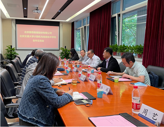2022年9月23日下午,校友企业北京握奇数据股份有限公司副总裁郭天光、研究院院长高翔等一行五人来访计算机与信息技术学院,与BEAT365党委书记贾卓生、副院长景丽萍等九人,就人才培养及科学研究等方面进行合作探讨。