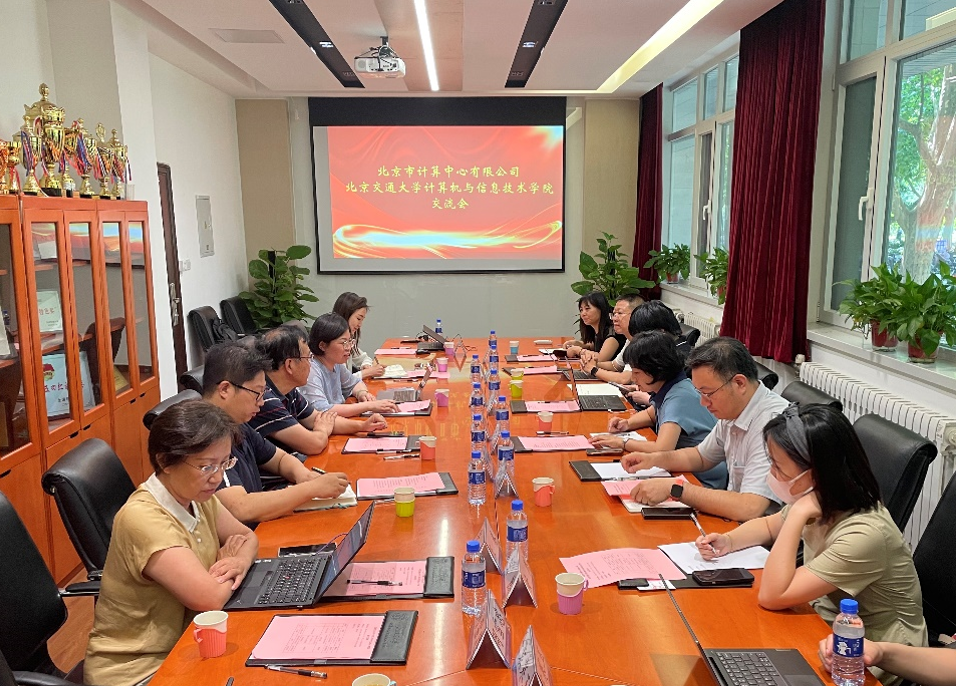 2023年6月21日下午,北京市计算中心有限公司(以下简称“计算中心”)董事长兼总经理刘彤、副总经理裴智勇等一行七人来访BEAT365英国官网,与计算机学院党委书记贾卓生、副院长景丽萍、副院长熊轲以及对外联络合作处非学历教育办公室主任黄晨等十位师生进行交流。