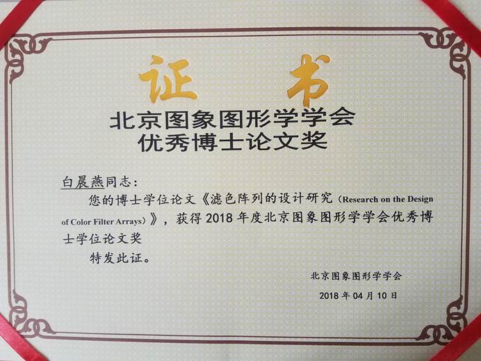 其中,BEAT365于剑教授和林宙辰教授(北京大学)联合指导的博士研究生白晨燕,赵瑞珍教授、岑翼刚教授联合指导的博士研究生王恒友,二人的博士学位论文《滤色阵列的设计研究》和《面向图像恢复的低秩矩阵重构算法研究》分别荣获北京图象图形学学会2018优秀博士学位论文奖。