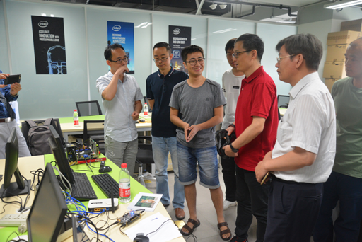 揭牌仪式后,参会人员还观摩了计算机学院入驻物联网创新实验室学生团队的人工智能创新大赛作品展示。