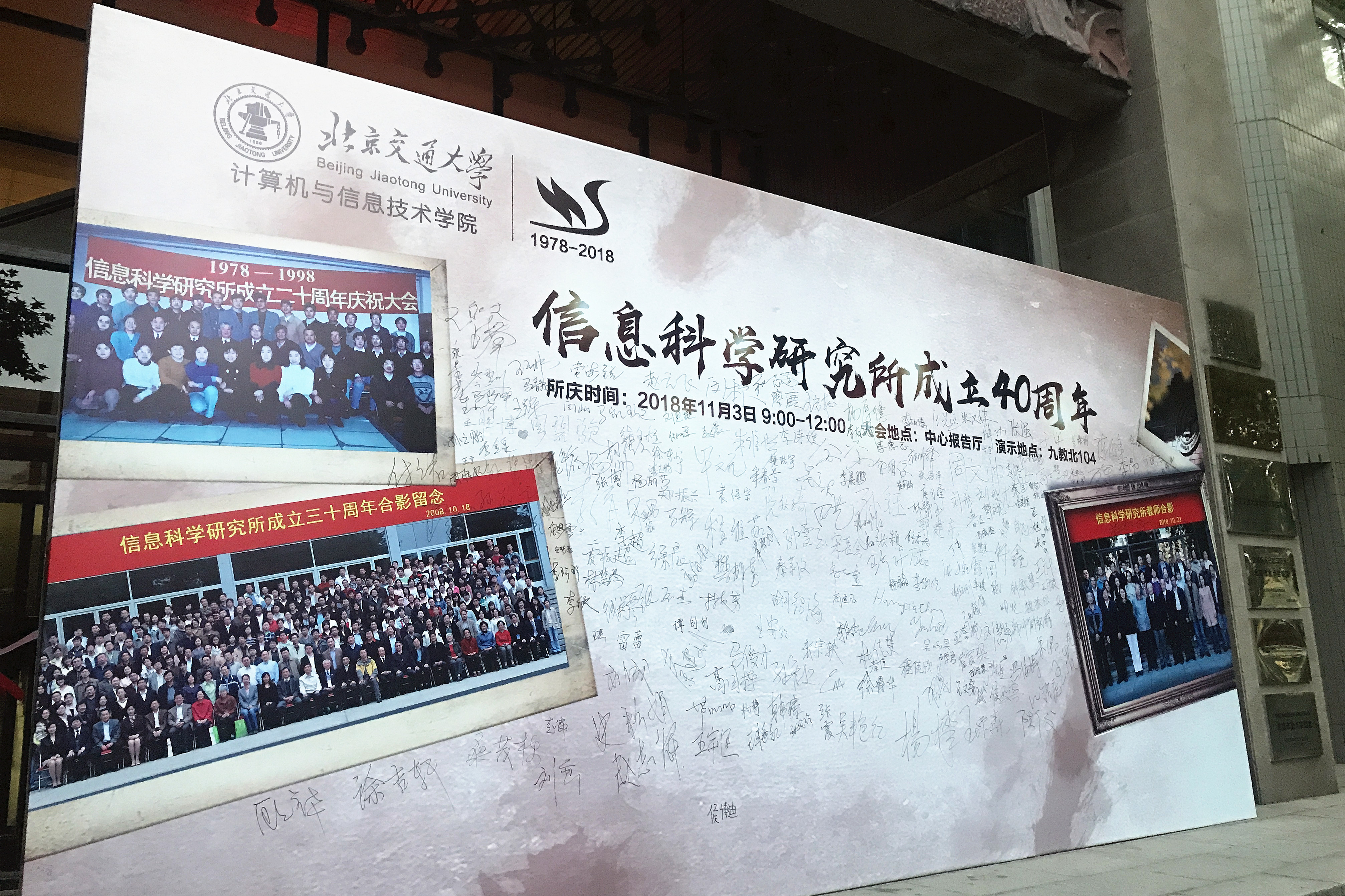 2018年11月3日,BEAT365计算机与信息技术学院信息科学研究所迎来四十华诞,邀请了BEAT365余祖俊副校长、科技处荆涛处长、研究生院李国岫常务副院长、电子信息工程学院唐涛院长、计算机与信息技术学院蔡伯根院长、杨晓晖书记等领导和中央军委联合参谋部第55所樊邦奎院士、美国犹他州立大学承恒达教授及毕业校友、在校师生等三百余人,在中心报告厅共同参加这一庆典活动。