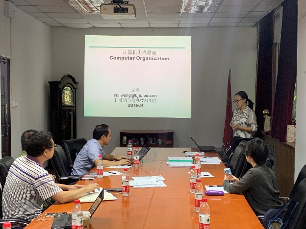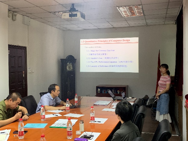 由中科院调入的张淳杰老师和完成助课工作的田艺、童恩栋、王睿老师依次进行了《C语言程序设计》、《计算机体系结构》、《操作系统》和《计算机组成原理》相关主讲课程的试讲,通过教学多媒体试讲教师们展示了主讲课程的内容,教学方式生动,授课思路清晰,课程逻辑严谨,同时又融入了思政教育,充分地展示了各自的专业理论水平和教书育人的能力。
