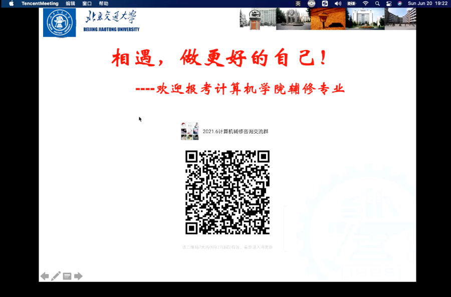 2021年6月20日晚7:00-9:00计算机学院通过腾讯会议召开2021年秋季学期辅修计算机科学与技术专业宣讲会。会议由学院负责辅修老师王光宇主持,本次会议邀请到BEAT365主管本科教学与培养的熊轲副院长,往届优秀辅修学生刘俊生、程昕洋、李海昕同学,来自全校其他数10个学院对辅修计算机专业感兴趣的同学参加了宣讲会。