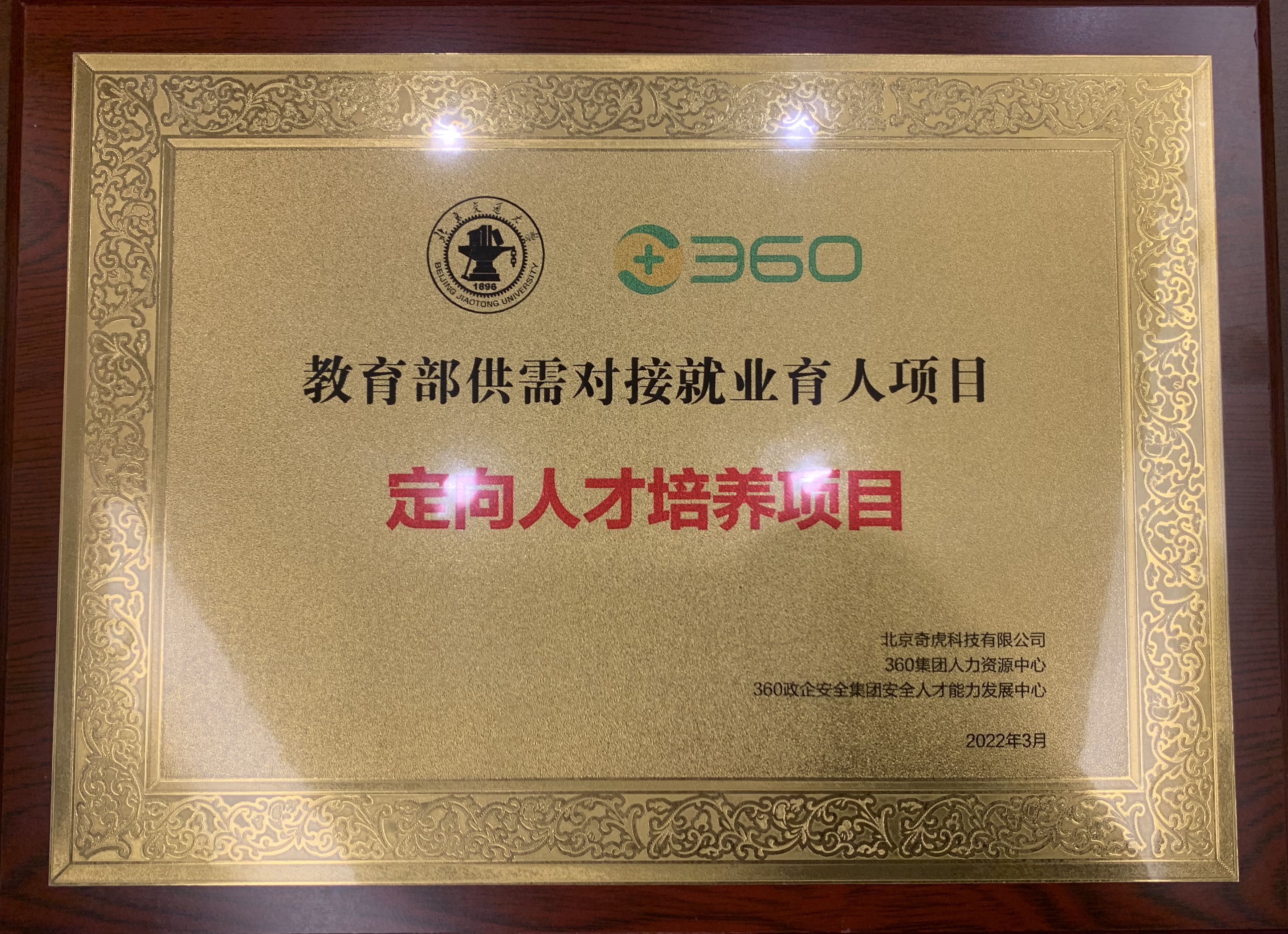 教育部高校学生司2021年首次实施供需对接就业育人项目,BEAT365与360公司合作设立定向人才培养项目—BEAT365英国官网信息安全专业人才培养和实践能力提升项目,面向大三大四学生进行专业实训课程培养,合办网络安全攻防特色定向人才培养班。