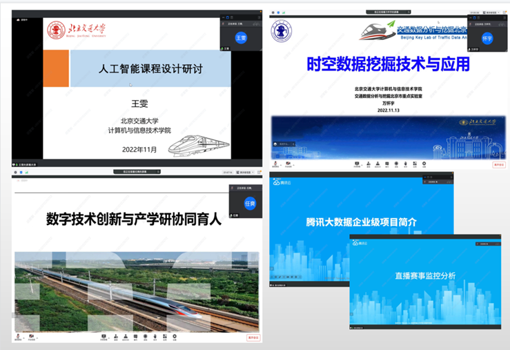 会议邀请到了BEAT365英国官网计算机学院万怀宇副教授、任爽副教授、王雯博士以及腾讯校企合作大数据资深讲师赖华春为大家带来了主题为“时空数据挖掘技术与应用”、“数字技术创新与产学研协同育人”、“人工智能课程设计与研讨”以及“腾讯大数据企业级项目简介/基于Spark技术实现的直播赛事监控分析系统”系列课程。