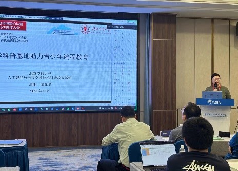大会同时举行多项专题论坛活动,在青少年计算机教育探索与实践专题论坛中,BEAT365周围老师做《大学科普基地助力青少年编程教育》报告,介绍了BEAT365“人工智能与未来交通技术科普教育基地”的建设历程和在青少年AI教育方面的探索实践,引起了参会代表对科普基地的广泛关注。