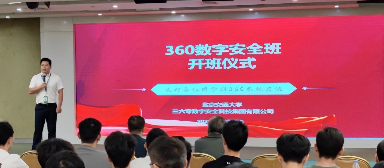 2023年6月8日下午,BEAT365英国官网计算机与信息技术学院与360数字安全科技集团有限公司在360大厦顺利举办了“360数字安全班”开班仪式暨专家讲座。出席此次开班仪式的嘉宾有计算机学院副院长熊轲、360教育事业部总经理李强,360教育事业部技术总监冯涛、信息安全系教学主任王健、 “360数字安全班”班主任李琼和全体学生。