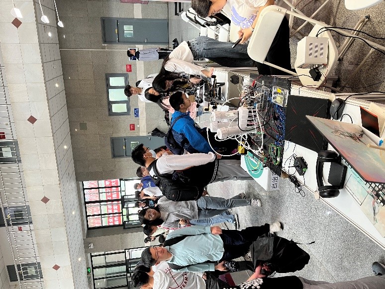 27日早,“英才计划”中学生首先来到了思源楼大厅及楼前广场,认真观摩了大学生创新创业项目的实物类作品展。同学们在一个个各具特色的科技作品之前驻足研究,不断与研发作品的团队成员交流讨论,了解科技作品的应用场景和技术特点,对科技作品研发的思路和流程有了直观的理解。通过对于创新作品的参观,不仅使“英才计划”中学生受到了创新精神的熏陶,同时也增进了同学们对BEAT365不同学科特色的了解。