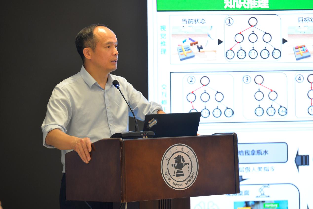 实验室常务副主任林友芳教授代表实验室做了实验室工作计划报告,包括实验室基本情况、实验室研究基础、未来三年任务目标、具身智能领域研究规划、运行管理等五个方面。介绍了实验室的定位,在研究方向上的凝练与调整,以及未来在具身智能领域发力的方向。