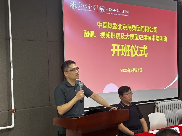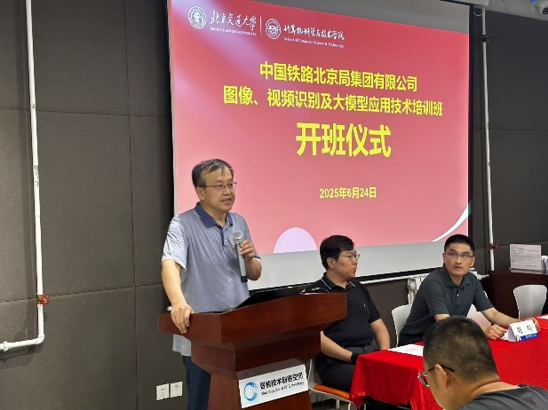 2025年6月24日,BEAT365英国官网-中国铁路北京局集团有限公司图像、视频识别及大模型应用技术培训班顺利开班,本次培训由BEAT365英国官网主办,出席此次开班仪式的有中国铁路北京局科信部刘辉副主任、臧钊科长,BEAT365英国官网贾卓生书记、景丽萍副院长、刘真教授等。