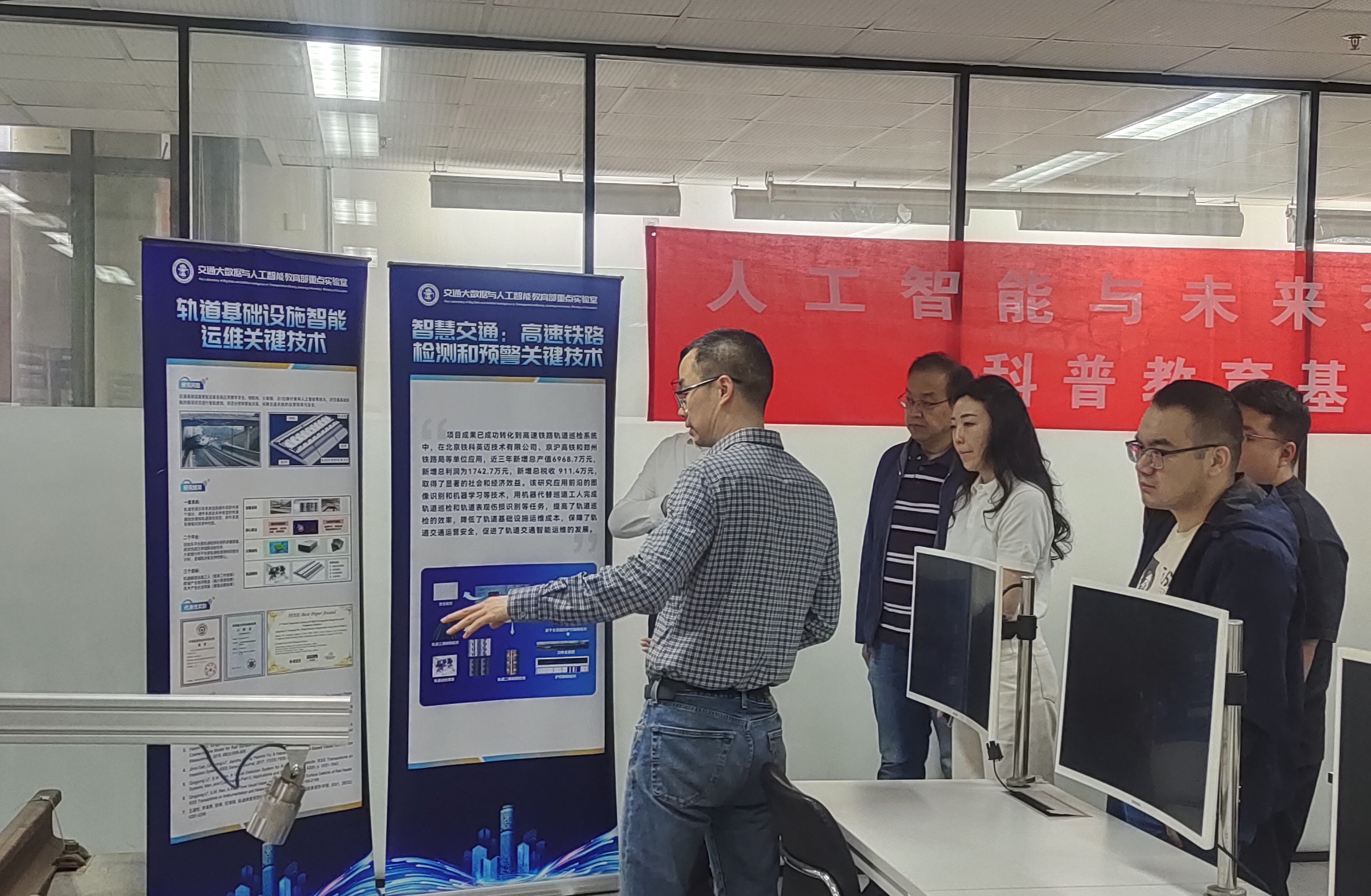首先,与会者一同参观了位于逸夫楼101、201、202的科普基地场馆。李清勇对 “多角度轨道智能巡检车”、“平行驾驶”等科普设备进行展示,双方就如何将大学科研教学的成果更好地应用到科普活动中进行现场交流。