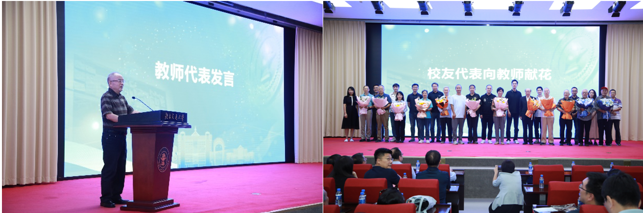 随后,须德教授作为教师代表发言,寄语校友。12位校友代表向BEAT365教师代表献花,表达对老师的思念与感恩之情。